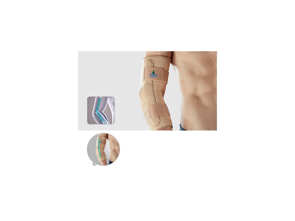 Ortéza na lakeť 1187 poskytuje vynikajúcu stabilizáciu a kontrolu pohybu vďaka bočným dlahám s kĺbovým (závesným) mechanizmom. Je vyrobená z priedušného materiálu, ktorý zabezpečuje komfort počas nosenia a zároveň udržiava teplo v oblasti lakťového kĺbu. Ortéza je odporúčaná pri liečbe vykĺbení, zlomenín bez posunov, po operáciách, po odstránení sadry a pri mäkkotkanivových poraneniach, ktoré vyžadujú znehybnenie.
